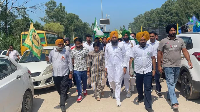 चंडीगढ़ : Kisan Andolan 200 Days शनिवार को विनेश फोगाट को शंभू बॉर्डर पर किसानों द्वारा सम्मानित किया गया। किसानों ने अपने आंदोलन के 200 दिन पूर होने एक कार्यक्रम में रखा था। इस कार्यक्रम में विनेश फोगाट को सम्मानित करने का फैसला लिया गया था। किसानों से सम्मान मिलने के बाद विनेश ने उनके जोश की तारीफ की, साथ ही उन्होंने केंद्र सरकार पर भी निशाना साधा।