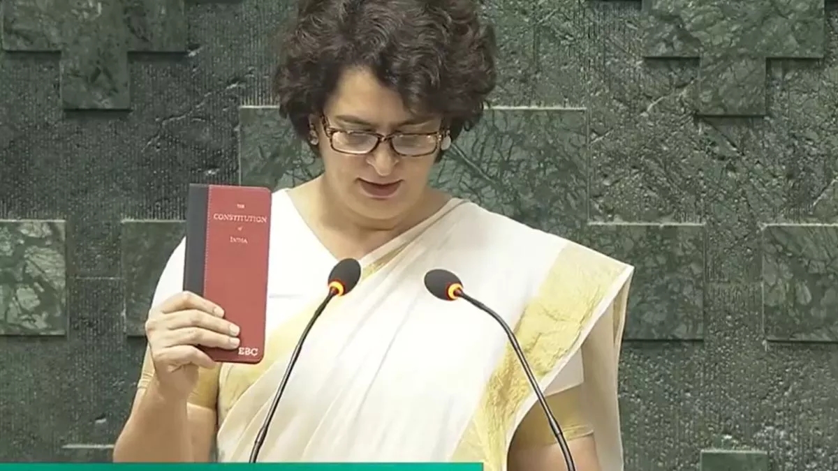 Priyanka Gandhi : कांग्रेस महासचिव प्रियंका गांधी ने गुरुवार को सांसद पद की शपथ ली। प्रियंका गांधी ने संविधान की प्रति हाथ में लेकर शपथ ली। मौजूदा लोकसभा में राहुल गांधी के बाद उनकी बहन प्रियंका भी संसद पहुंच गईं। जवाहर लाल नेहरू और विजयलक्ष्मी पंडित के बाद पहली बार नेहरू-गांधी परिवार के भाई-बहन की एक और जोड़ी सदन में नजर आएगी।
