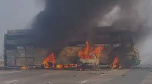 Yamuna Expressway Accident : मथुरा में दिल्ली-आगरा एक्सप्रेसवे पर मंगलवार तड़के भीषण हादसा हो गया। घने कोहरे में सात बसें और तीन कारें आपस में टकरा गईं। इसके बाद वाहनों में आग लग गई। सूचना पाते ही इलाके की पुलिस और जिला प्रशासन मौके पर पहुंच गया। छह लोगों के मरने की खबर है और 80 से अधिक लोग घायल हुए हैं। हालांकि, स्थानीय प्रशासन ने चार लोगों के मरने की पुष्टि की है। देर रात हुए हादसे के कारण यात्रियों को काफी परेशानी का सामना करना पड़ा। हादसे की सूचना मिलने के बाद मौके पर राहत-बचाव कार्य के लिए 11 फायरबिग्रेड की गाड़ियों के अलावा 14 एम्बुलेंस भेजी गई।