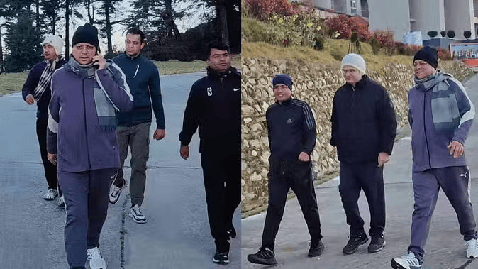 CM Dhami In Bhararisain : भराड़ीसैण में अफसरों संग मार्निंग वॉक निकले मुख्यमंत्री धामी