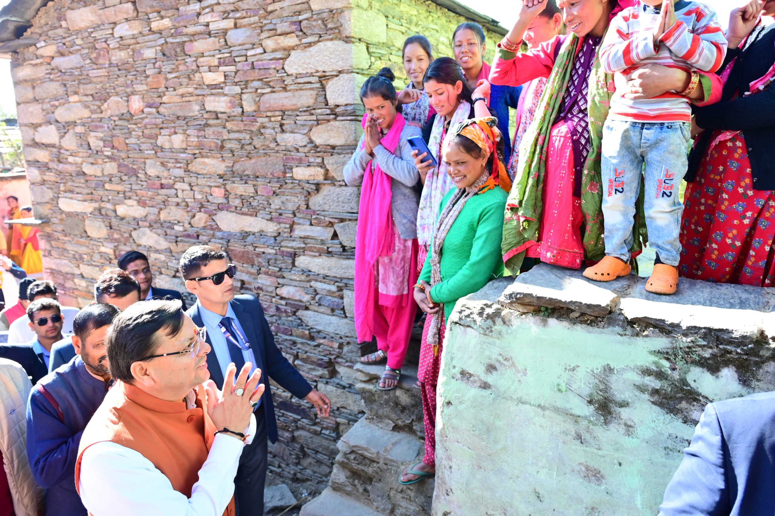 चमोली/देहरादून : CM Dhami In Garsain मुख्यमंत्री श्री पुष्कर सिंह धामी दो दिवसीय भ्रमण के दौरान मंगलवार को ग्रीष्मकालीन राजधानी गैरसैंण के सारकोट गांव पहुंचे। मुख्यमंत्री के सारकोट पहुंचने पर ग्रामीणों ने उनका भव्य स्वागत किया। मुख्यमंत्री ने गांव में पहुंचकर कोट भैरव मंदिर में पूजा अर्चना कर देश और प्रदेश की सुख समृद्धि की प्रार्थना की। सारकोट गांव पहुंच कर मुख्यमंत्री ने शहीद वासुदेव सिंह के घर पर जाकर परिजनों से भी मुलाकात की। वहीं कार्यक्रम में दौरान मुख्यमंत्री ने सारकोट महिला मंगल दल को सांस्कृतिक सामग्री व अन्य सामान खरीदने के लिए एक लाख की धनराशि चौक के माध्यम से दी।