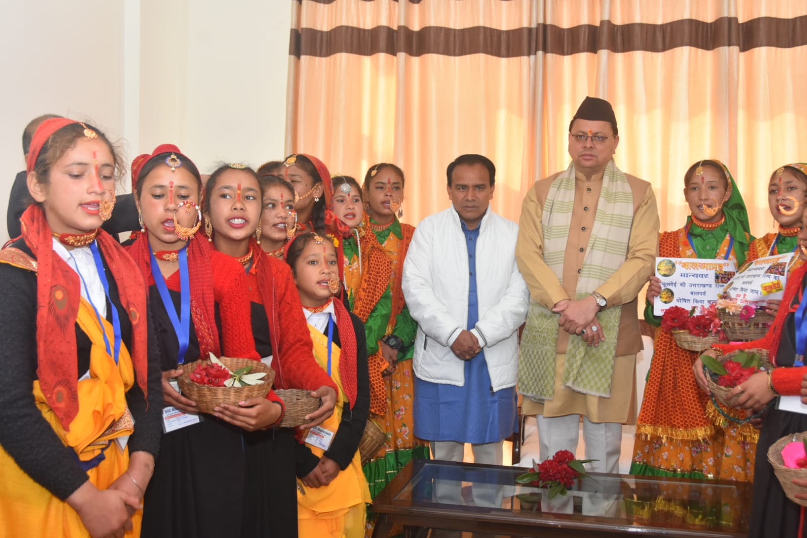 देहरादून: Phooldei 2023  उत्तराखण्ड के लोक पर्व फूलदेई के अवसर पर गुरूवार को भराड़ीसैंण स्थित मुख्यमंत्री आवास में क्षेत्र के बच्चों ने पारम्परिक मांगल गीतों के साथ रंग-बिरंगे प्राकृतिक पुष्पों की वर्षा की। मुख्यमंत्री पुष्कर सिंह धामी ने सभी को इस पावन पर्व की शुभकामना देते हुए कहा कि किसी भी राज्य की संस्कृति एवं परंपराओं की पहचान में लोक पर्वों की अहम भूमिका होती है। हमें अपने लोक पर्वों एवं लोक परम्पराओं को आगे बढ़ाने की दिशा में लागातार प्रयास करने होंगे।